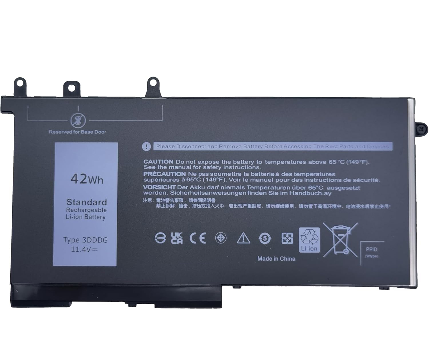 Our Dell 3dddg laptop battery which we design is in strict accordance with the highest control standards. It carries with a smart interior circuit board that provides battery-unbalanced-shut-off protection, thermal runaway protection, overcharged protection, over-discharged-shut-off protection, and high/low-temperature-shut-off protection.